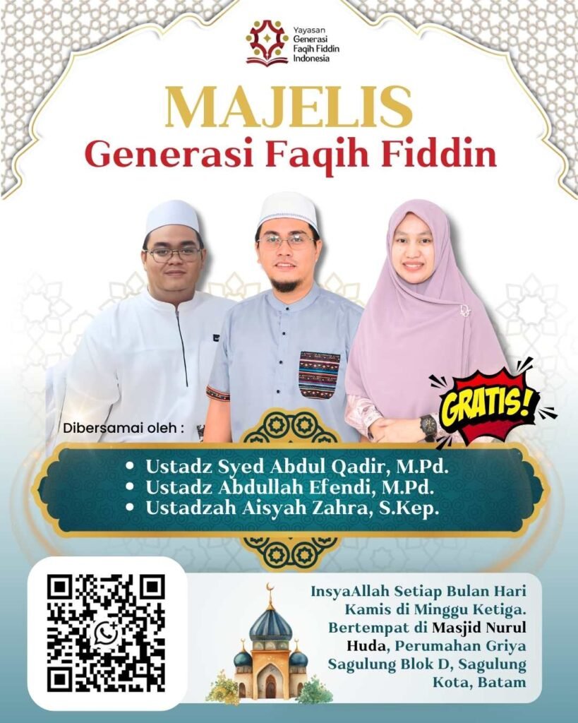 Melalui majelis ini, peserta tidak hanya mendapatkan faedah keilmuan, tetapi juga bimbingan praktis terkait solusi berbagai persoalan kehidupan modern yang dihadapi keluarga, orang tua, dan pendidik. Setiap materi disampaikan dengan pendekatan yang moderat, berlandaskan dalil, serta relevan dengan kebutuhan masyarakat saat ini. Gabung ke grup Majelis GenFa dengan cara klik LINK INI, atau bisa juga dengan scan barcode yang ada pada flyer. Barakallahu fikum