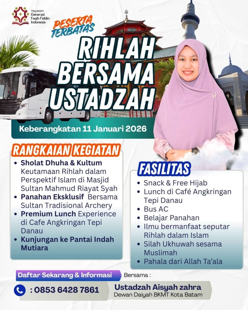 Thank you for reading this post, don't forget to subscribe!Yayasan Generasi Faqih Fiddin Indonesia dengan bangga mengadakan kegiatan Rihlah Bersama Ustadzah, sebuah perjalanan penuh ilmu, adab, dan kebersamaan yang dirancang khusus untuk para Muslimah yang ingin memperkuat ruhiyah sekaligus menikmati suasana rihlah yang berkesan.